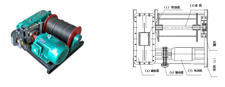 專用電機采用B級絕緣的卷揚機專用電動機,起動轉柜大,慣性小,溫升低,可長時間頻繁使用。
