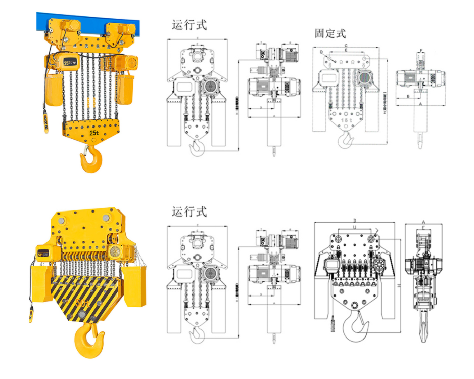 運行式環(huán)鏈電動葫蘆(30T-50T)尺寸參數(shù): | ||||||