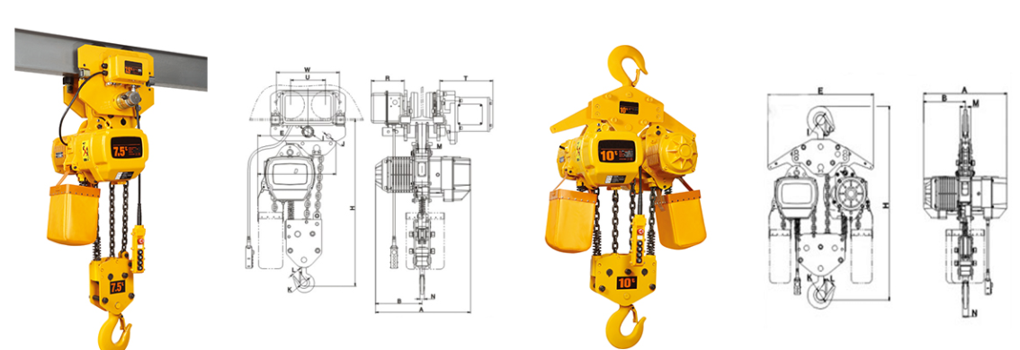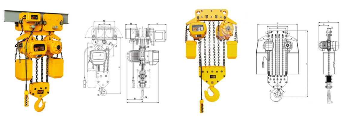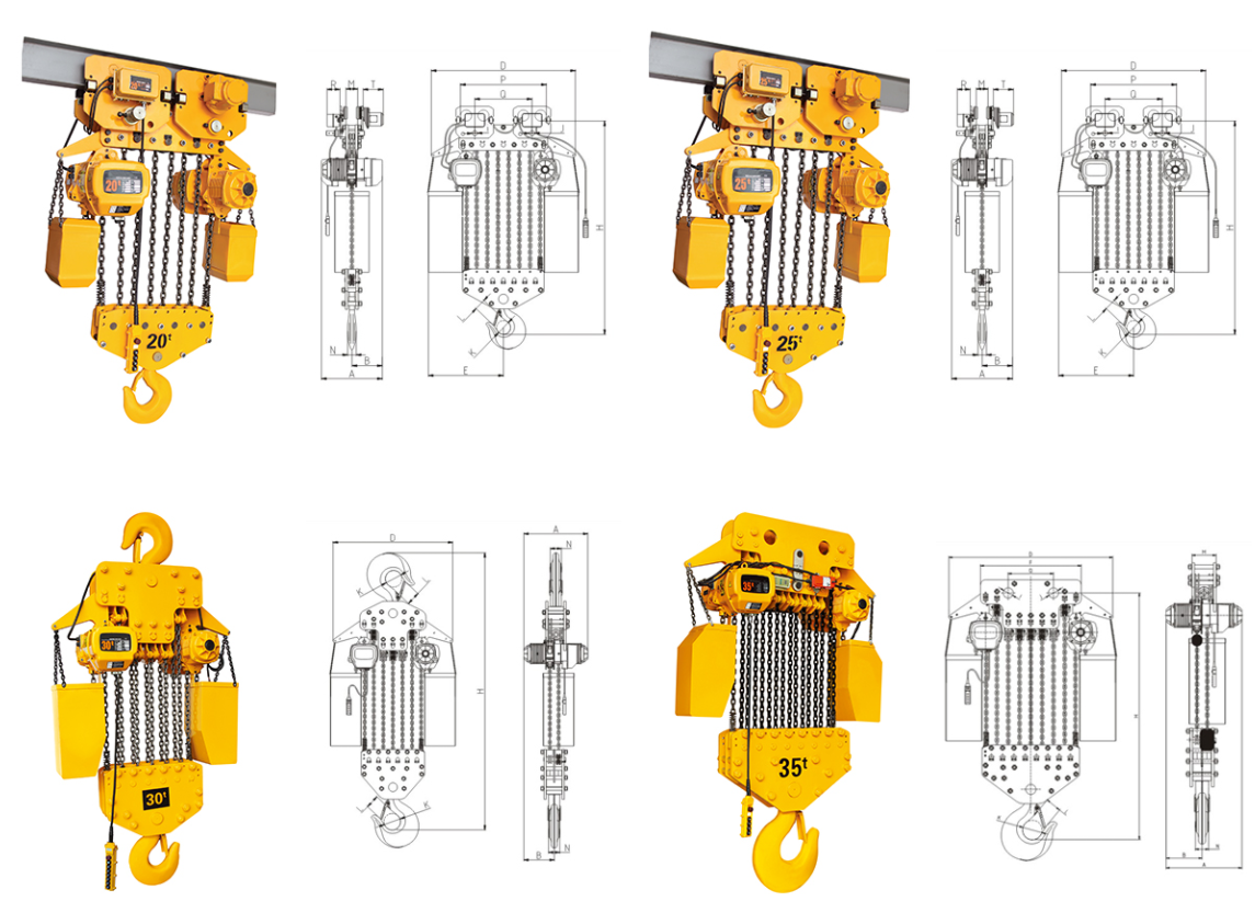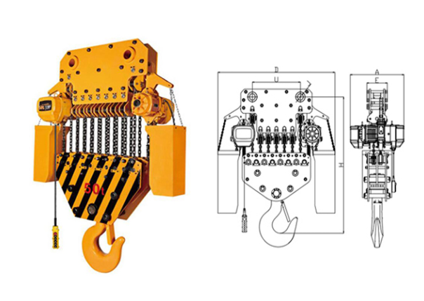 掛板式環(huán)鏈電動葫蘆(7.5T-50T) 尺寸參考: | ||||||||