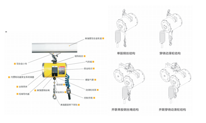 動滑輪鋼絲繩氣動平衡吊 | ||||||