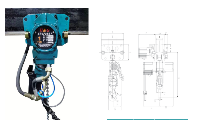 滬工礦用運(yùn)行式氣動(dòng)葫蘆參數(shù)1: